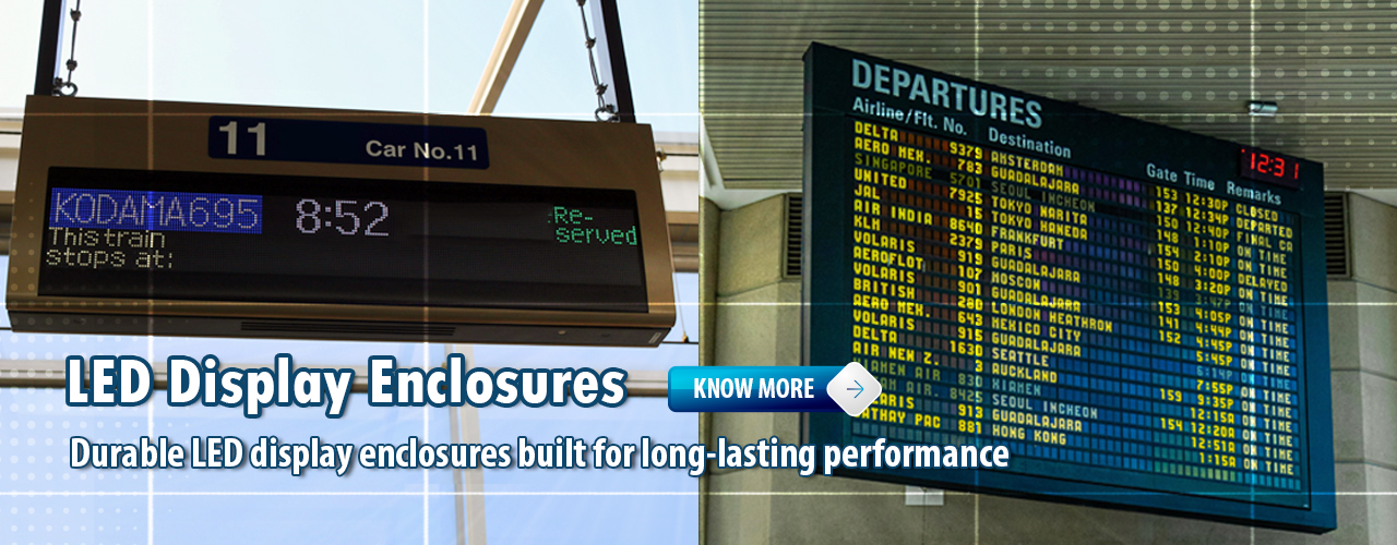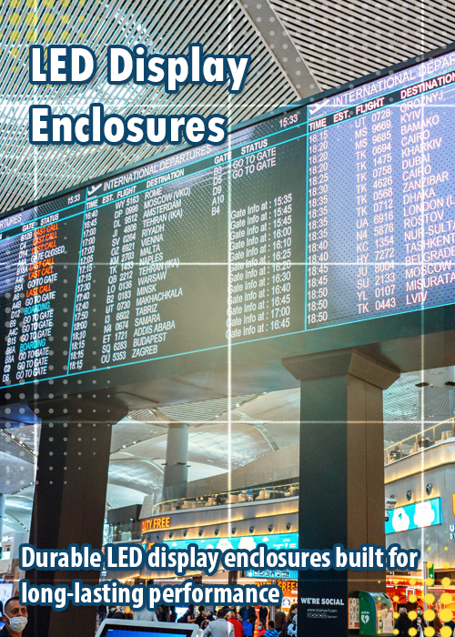 We manufacture robust LED display enclosures for public information and digital signage systems used in critical infrastructure locations.